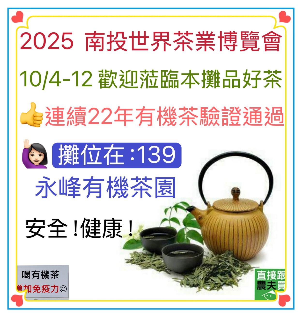 歡迎蒞臨永峰有機茶園,若要賞茶!品茶!買茶!顧客請先電話預約喔 !謝謝